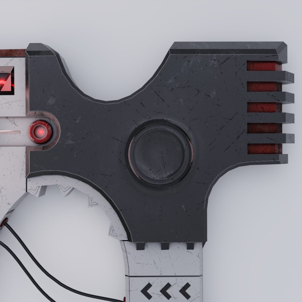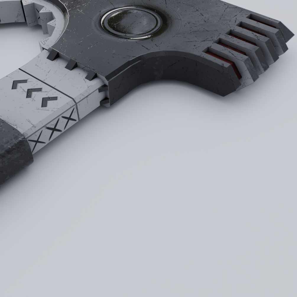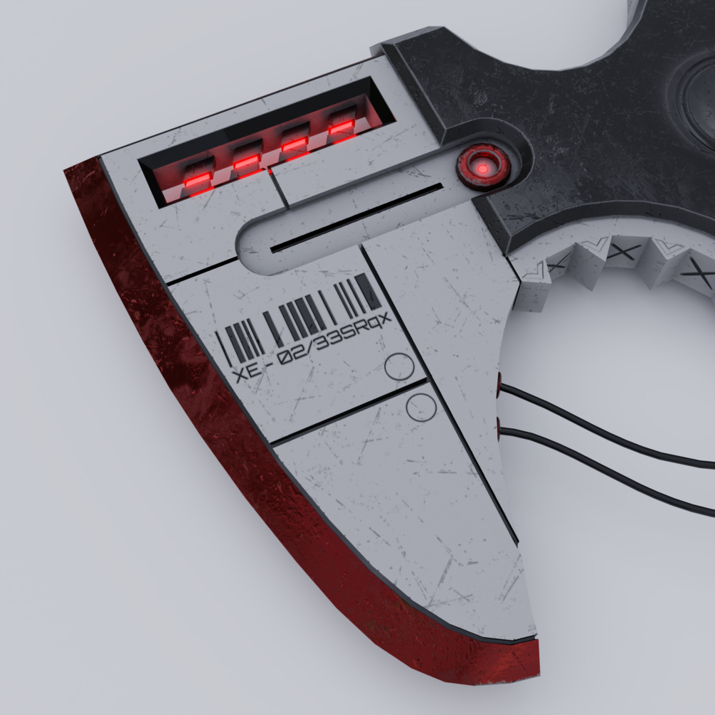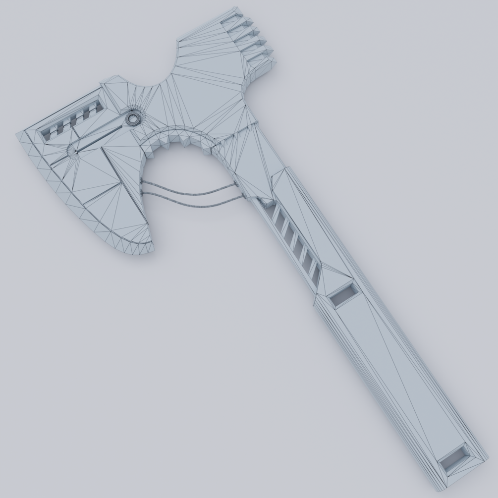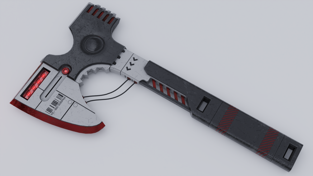 Futuristic axe in sci-fi style, triangulated and optimized for video game and rendering projects. The model has a fully textured, detailed design that allows for close-up renders.